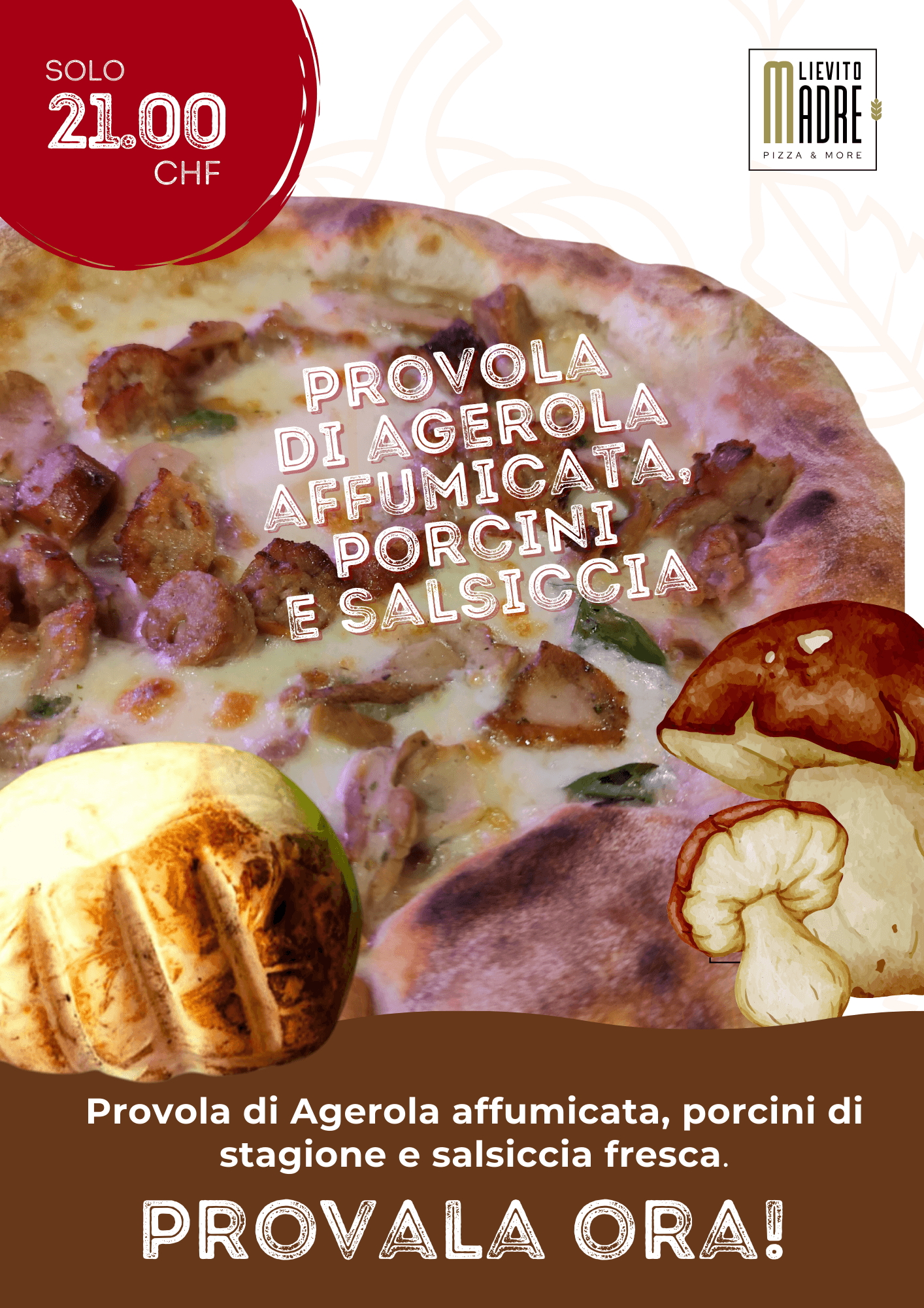 Funghi, salsiccia, pomodoro, caciocavallo